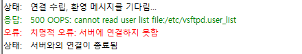 "응답: 500 OOPS: cannot read user list file:/etc/vsftpd.user_list"